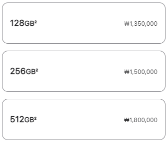 | 256 GB | 140만원 | 150만원 |